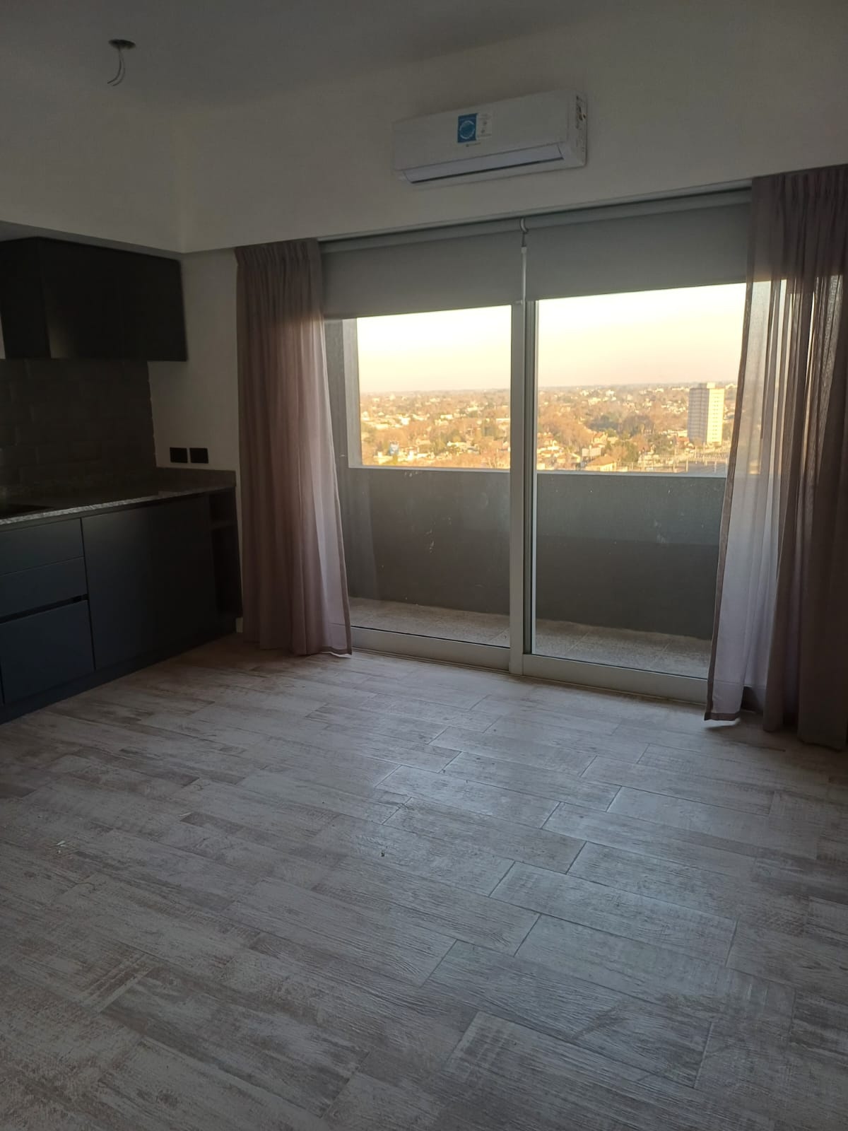 Hermoso Monoambiente a estrenar en piso 14 al frente: Que consta de : Ambiente único, con piso porcelanato, amplia cocina con muebles alto y bajo mesada, anafe de vitrocerámico, conexión para lavarropas, balcón al frente con termo, cortinado en ventanal, aire acondicionado frio/ calor, distribuidor, ante baño con placard, baño completo con ducha. El Edificio cuenta con sistema monitoreado de seguridad y salón de usos múltiples. Expensas aproxi.: $ 65.000